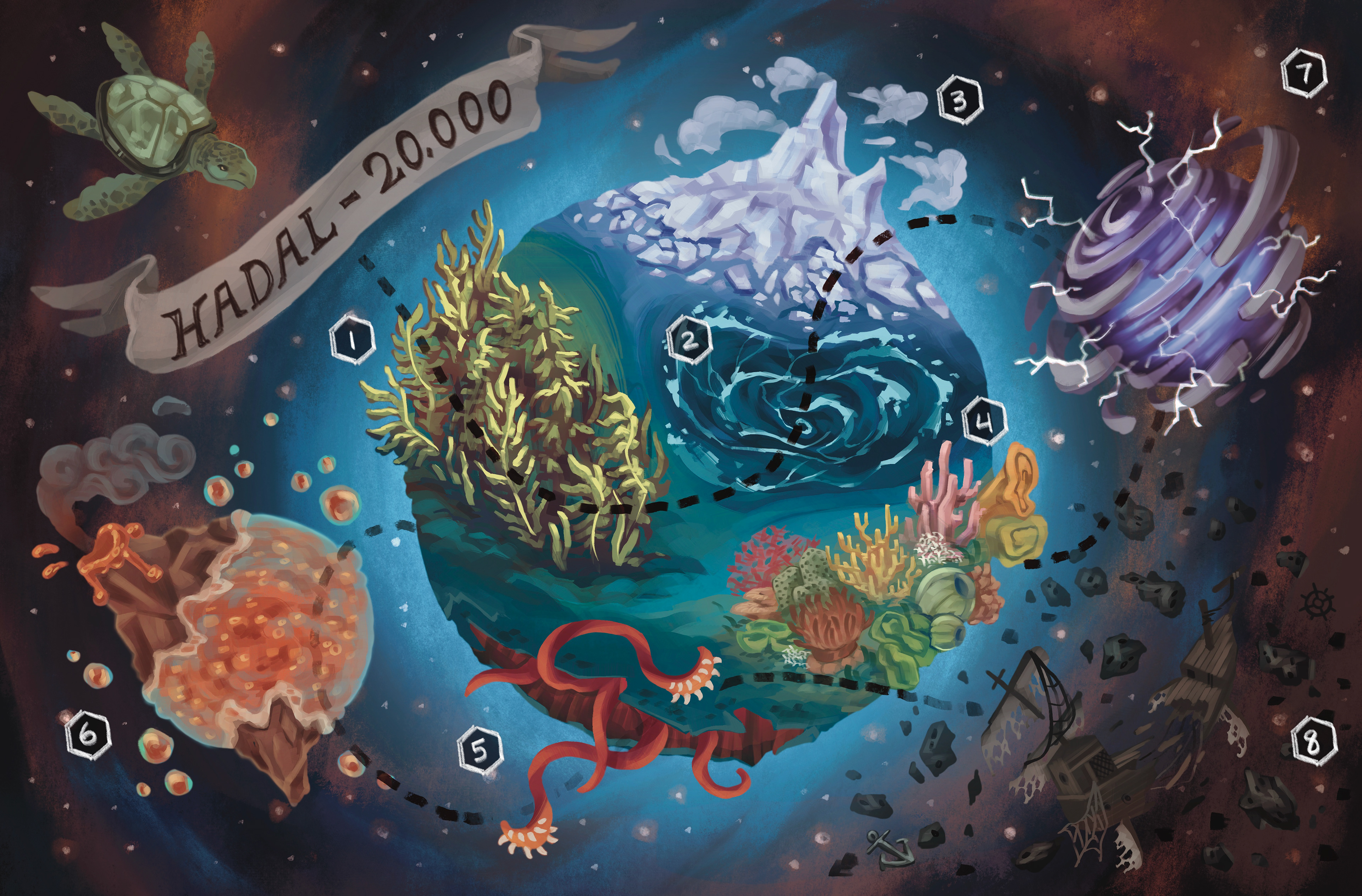 1. The Kelp Forest 2. Whirlpool 3. The Polar Sea 4. Coral Reef 5. The Deep Dark 6. The Boiling Sea 7. Typhoon 8. Debris Field